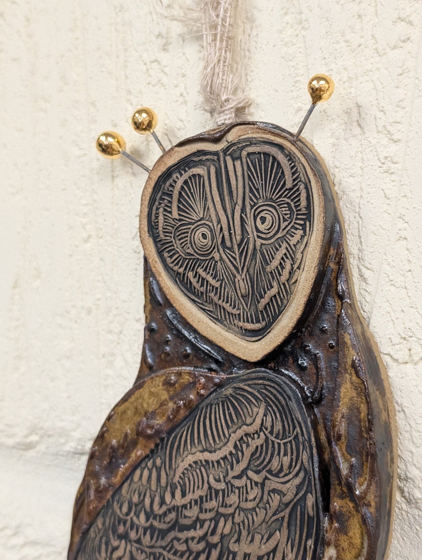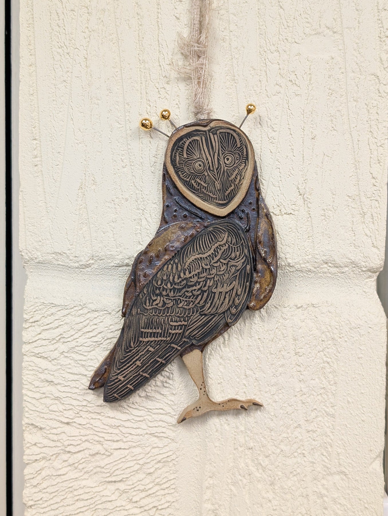 These hand drawn and carved owls are truly unique and stunning. Hang them as individual pieces or create a charming family of owls.